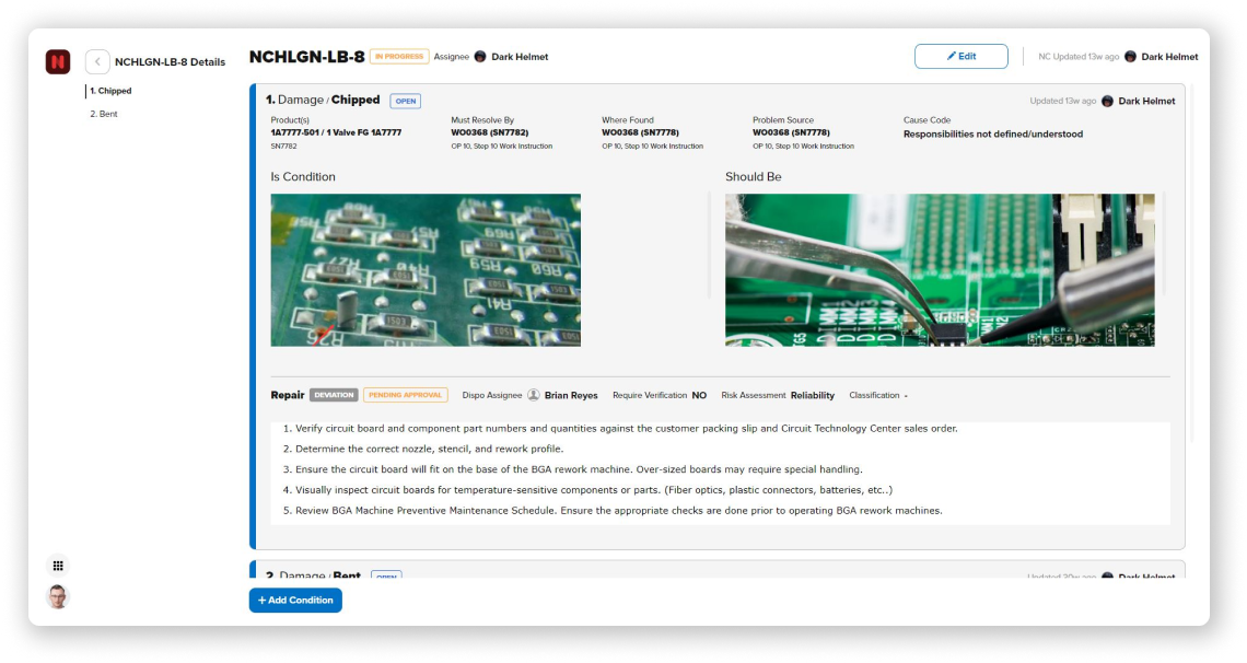 Accelerate entire nonconformance process from detection through decisions, to disposition actions to prevent costly delaysÂ